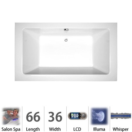 Jacuzzi SIA6636CCR5IWW Sia 6636 Salon Illuma Lcd Whisper RH White?Sia Collection:JacuzziÂ's Sia collection of luxury tubs is the ideal addition to any modern bath setting. With sleek, minimalist lines and symmetrical smoothness, these luxury tubs will easily create an eye-catching design statement. Choose from two different sizes and four different colors (white, black, almond, and oyster) for the straightforward Sia luxury tub. And with optional bath pillows, this could very easily become your bathroomÂ's most cherished fixture. So, why JacuzziÂ's Sia collection of luxury tubs? Because sometimes the most fulfilling pleasures can be the simplest.Measurements:66"L x 36"W x 25"HLuxury Salon Spa:A statement making bathroom centerpiece, Jacuzzi s line of Salon Spa s are as functional as they are beautiful. By combining the technologies of both luxury Whirlpool with luxury PureAir , Jacuzzi Salon Spa tubs give users the ability to select from over a dozen unique experiences. During each bathe, you will have your choice between Jacuzzi s legendary Whirlpool experience and the calming effervescence of PureAir . Top of the line components such as a 900-watt heated air blower, powerful multi-speed motor, and targeted jets are what makes Jacuzzi s Salon Spa the industry s leading luxury tub. User-friendly controls and beautiful lighting completes the package. Listed below are the details for the Jacuzzi Luxury Salon Spa.Powerful Multi-Speed Motor- High/Low speeds are electronically operated from the Jacuzzi user controls.Silent Air Induction- Jacuzzi s patented air induction system silently mixes air into the water creating that legendary Jacuzzi Whirlpool experience without a hissing sound.Electronic Airflow Adjustability- Air induction levels are adjusted electronically fr