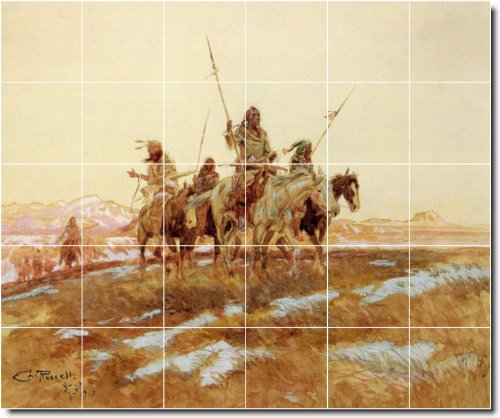 Charles Russell Indians Floor Tile Mural 19. 40x48 Inches Using (30) 8x8 ceramic tiles.