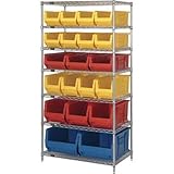 Quantum Storage Systems WR7-20-MIXYL 7-Tier Complete Wire Shelving System with 8 QUS950, 3 QUS952, 4 QUS951, 3 QUS953 and 2 QUS954 Yellow Hulk Bins, Chrome Finish, 24" Width x 36" Length x 74" HeightGenuine Quantum modular wire systems offer a unique combination of shelf and post sizes in a variety of finishes to compliment any application. The split sleeve and grooved numbered posts allow for easy and quick assembly. The all welded shelf construction is supported with architectural wire trusses to provide between 600 lbs and 800 lbs capacity per shelf. Unit also includes: 4 - 5" swivel poly stem casters, 2 with brakes, 4 donut bumpers. 1 Year warranty agianst defects.