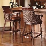| ✚✚✚ Marco Woven-back Bar Stool - Counter Height - Frontgate Solid mahogany hardwood frame. 180° smoothly rotating memory swivel is the best in the industry. Brass footrest and floor glides preserves surfaces. A handwoven abaca back and bent rattan accents give our Marco Woven-back Bar Stool a relaxed, island-inspired, casual feel. This bar stool's upholstered seat and back of aniline-dyed leather will age over time to a beautiful patina. . 180 degrees smoothly rotating memory swivel is the best in the industry . .