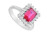 | ✚✚✚ GF Bangkok Ruby and Cubic Zirconia Ring : 10K White Gold - 3.66 CT TGW Size 11.5 A rectangle shape GF bangkok ruby is surrounded by twenty-two smaller round white CZs. Made in 10K white gold this gemstone ring has a total weight (TGW) of 3.66 carat.